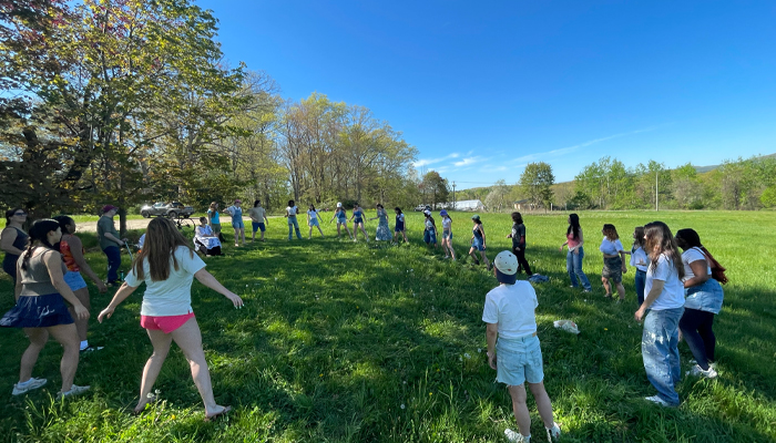Created, directed and facilitated by Jungeun Kim in collaboration with the class “Performance As Socially Engaged Art Practice” Date: May 7th, 2024 Location: Book and Plow Farm, Amherst College Description: Community Care Market was an interactive and communal performance event that explored the theoretical boundaries of performance art and care practices. The performance began with a group breathwork and then participants were invited to visit different care markets at the farm which offered various practices and activities in which they engaged with each other. As a closing ceremony, a movement circle was created to celebrate and acknowledge our time together.